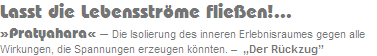 »Pratyahara« - Die Isolierung des inneren Erlebnisraumes gegen alle Wirkungen, die Spannungen erzeugen könnten. - „Der Rückzug”