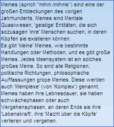 Ich sagte, die VORAUSSETZUNGEN seien nicht gegeben. Es fehlen innere wie äußere - psychische wie gesellschaftliche - Voraussetzungen. So kann die 'Verwirklichung' einzig darin bestehen, an der Erschaffung dieser Voraussetzungen zu arbeiten, die Hauptmöglichkeit der Realisierung kann nur darin bestehen, SICH AUF DEN WEG ZU MACHEN - mit Vorberei-tungen zu beginnen für 'jene Zeit', dass irgendwann - nach wer weiß, wievielen Generationen - die Sache doch noch Wirklichkeit wird. Nicht, weil ich es mir so vorstelle, sondern weil die Entwicklung dahin geht - ich habe nur die Tendenzen extrahiert. Und doch geht sie deswegen dahin, weil die Memes in Leuten wach werden und sie an ihrer Verwirklichung zu arbeiten beginnen. Dies ist meine Lebensarbeit auf dem Gebiet des Engagements unter meinen Mitmenschen, und ein Teil dieser Arbeit soll diese kleine Lichtung sein, auf welche Du Dich im Dschungel des Internet verirrt hast - oder wohin Du beabsichtigt gekommen bist - worüber ich mich freue...